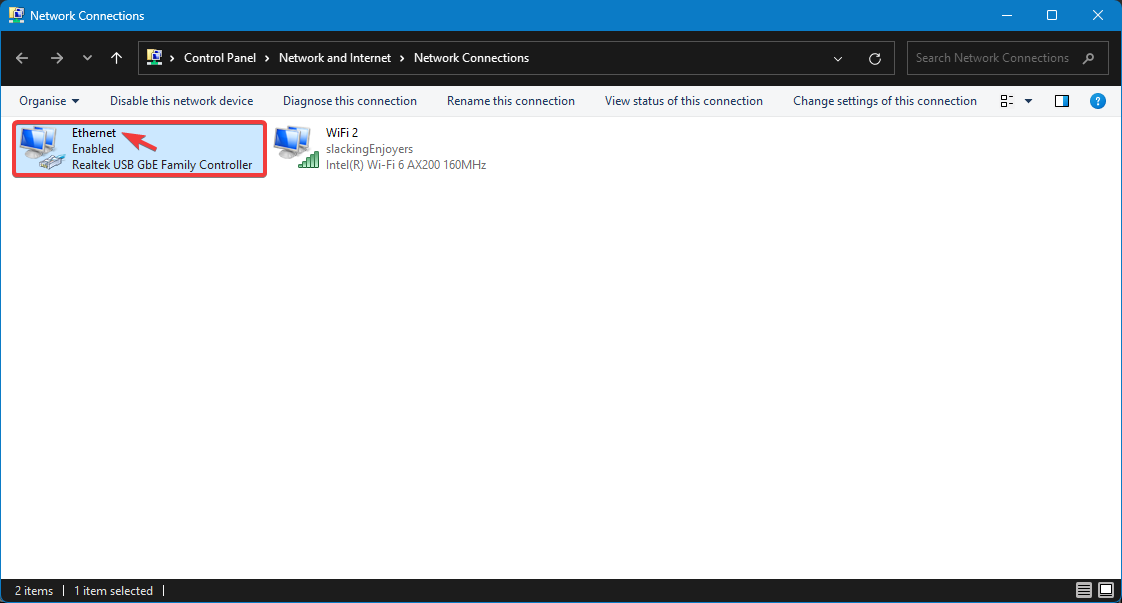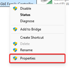 In the list of adapters, right-click your Ethernet adapter → Properties.