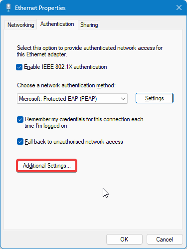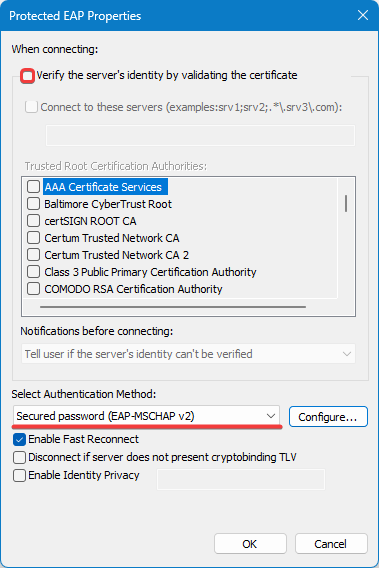 For Authentication Method, select Secured password (EAP-MSCHAP v2).