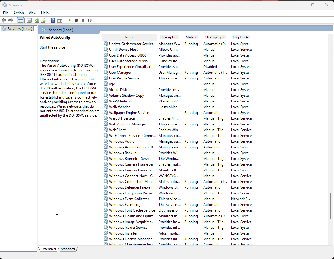 The dorm network uses 802.1X authentication. For this to work, you must enable the Wired AutoConfig service: