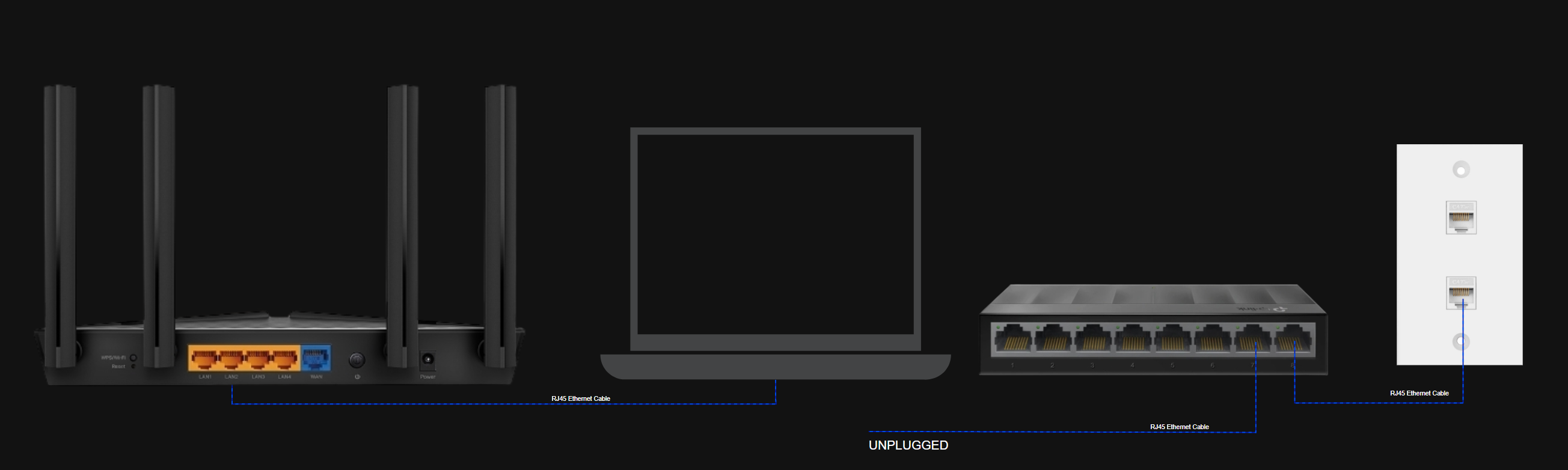 Whatever you do, DO NOT UNPLUG the RJ45 cables from the switch!