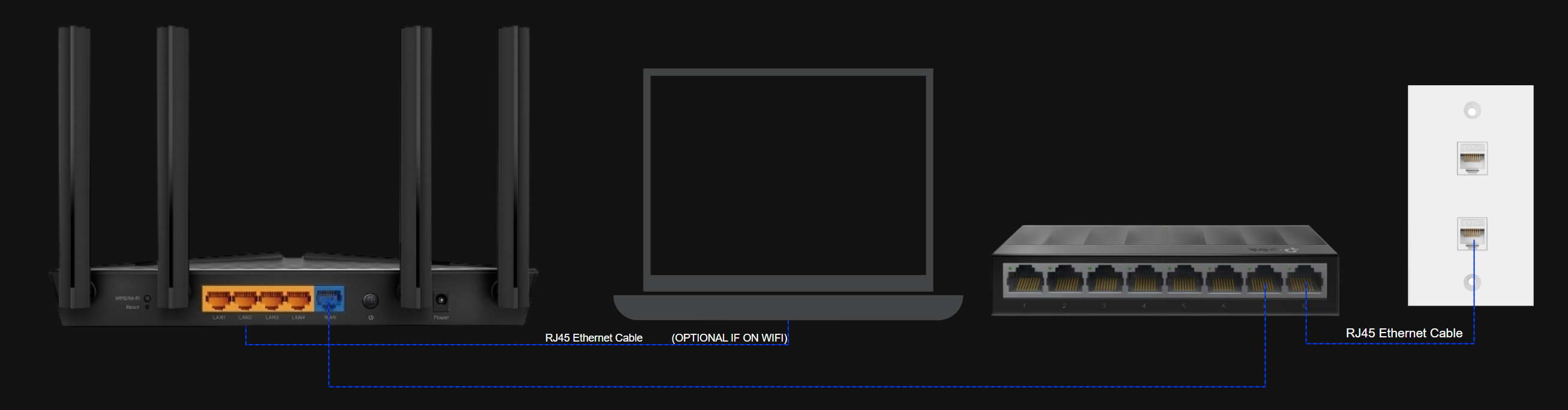 In order to access your router setup page, you will either need to connect to WI-FI or connect your computer to one of the LAN ports of the router.